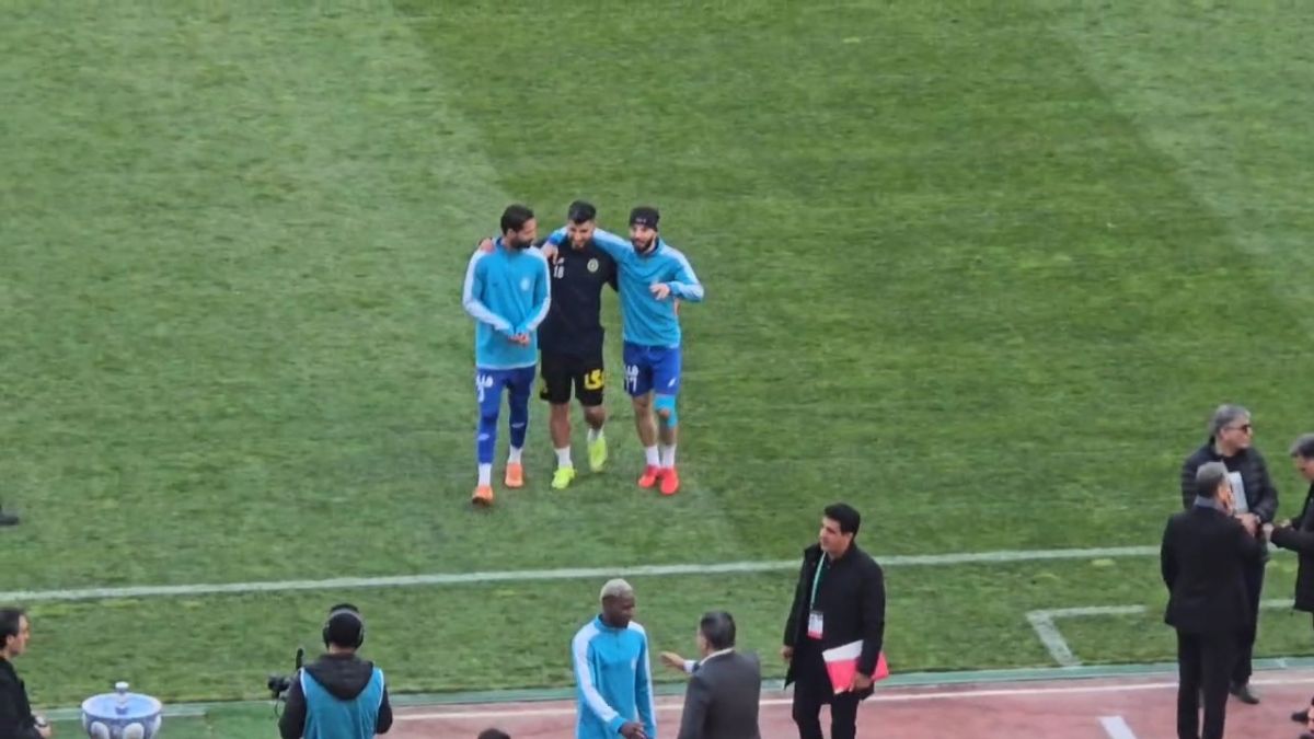 گرم کردن بازیکنان سپاهان و استقلال همراه با خوش و ...