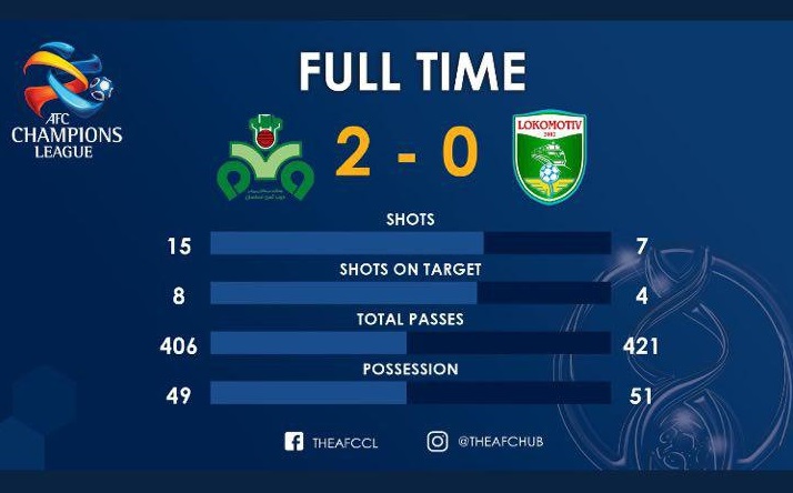 به گزارش "ورزش سه"، در چارچوب رقابت های لیگ قهرمانان آسیا و از هفته دوم ، ذوب آهن اصفهان در خانه میزبان لوکوموتیو ازبکستان بود و در آخر با گل های مرتضی تبریزی و سید محمد حسینی به برتری رسید . اما آمار بعد بازی امروز نشان می دهد که ذوب آهنی ها در رقابتی نزدیک و با برتری نسبی در این بازی پیروز شده اند .