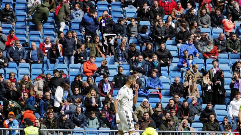 ورزشگاه برنابئو در بازی رئال و ایبار نیمهخالی بود و صندلیهای آبی پرشماری دیده میشد که خالی هستند.