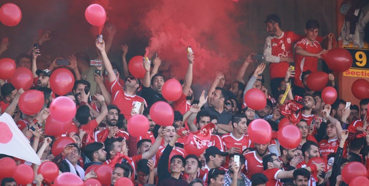 * هواداران تراکتورسازی بادکنکهایی را پیش از شروع مسابقه در دست داشتند که با آغاز بازی، این بادکنکها را به آسمان رها کردند.