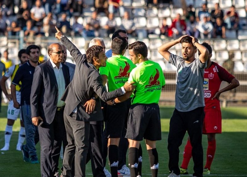 به گزارش ایرنا، در بازی ۲ تیم ماشین سازی و پرسپولیس تهران، داور بازی در دقایق پایانی یک خطای پنالتی برای تیم میهمان گرفت که با حاشیه های بسیاری مواجه شد و به دلیل این تصمیم داوری، فضای ورزشگاه متشنج و به اخراج سرمربی و مربی تیم ماشین سازی از سوی داور بازی منجر شد.