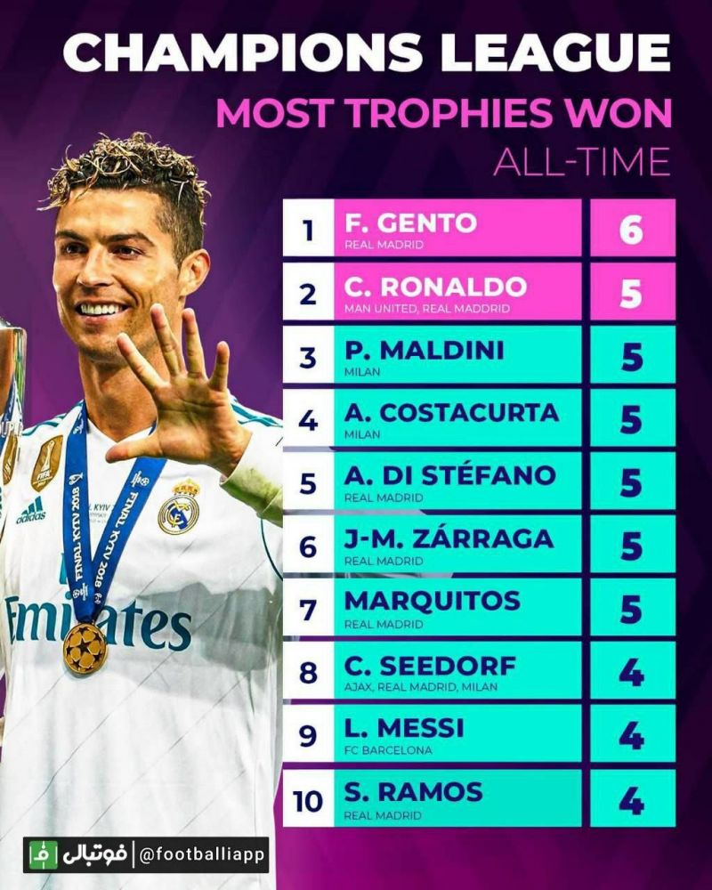 اینفوگرافی/ پرافتخارترین بازیکنان تاریخ لیگ قهرمانان اروپا