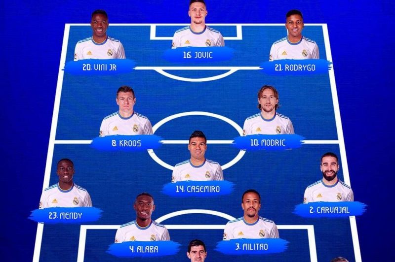 با توجه به مصدومیت کریم بنزما، کارلو آنچلوتی از لوکا یوویچ در کنار رودریگو و وینیسیوس جونیور در خط حمله تیم خود استفاده کرده است و بدین ترتیب تشکیل یک مثلث داده است. یوویچ در بازی قبلی برای رئال مادرید عملکرد خوبی داشت و اکنون باید دید که در این بازی به چه شکل عمل خواهد کرد.
