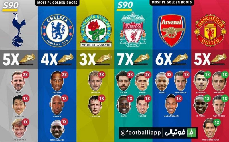 باشگاه‌هایی که بیشترین نماینده را در کسب جایزه کفش طلایی لیگ جزیره (برترین گلزن) داشته‌اند