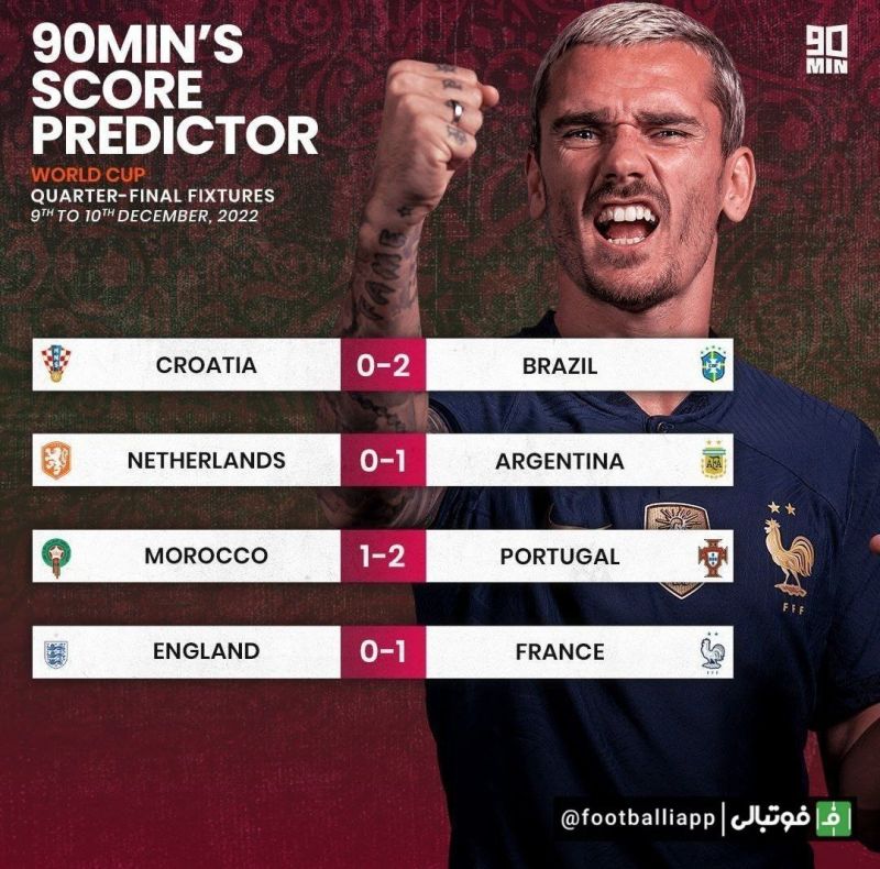 پیش بینی 90min از نتایج دیدارهای مرحله یک چهارم