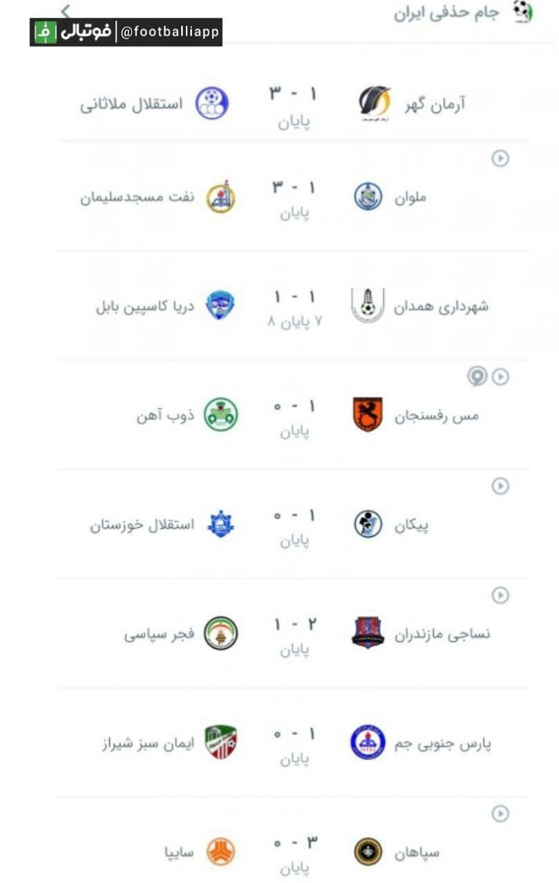 نتایج دیدارهای امروز جام حذفی