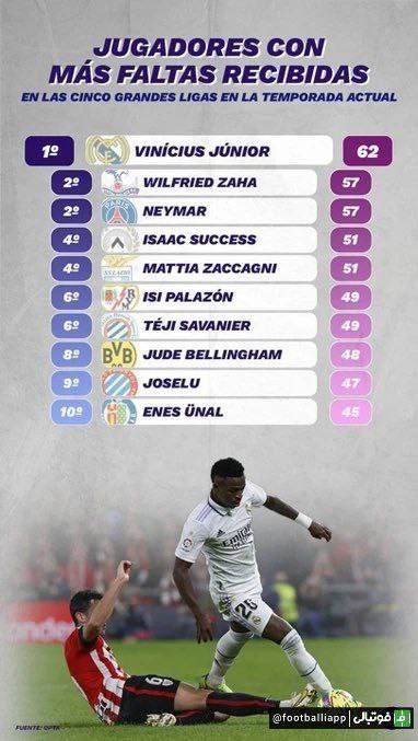 اینفوگرافی/ بازیکنانی که در این فصل پنج لیگ اروپایی، بیشترین خطا روی آنها انجام شده است