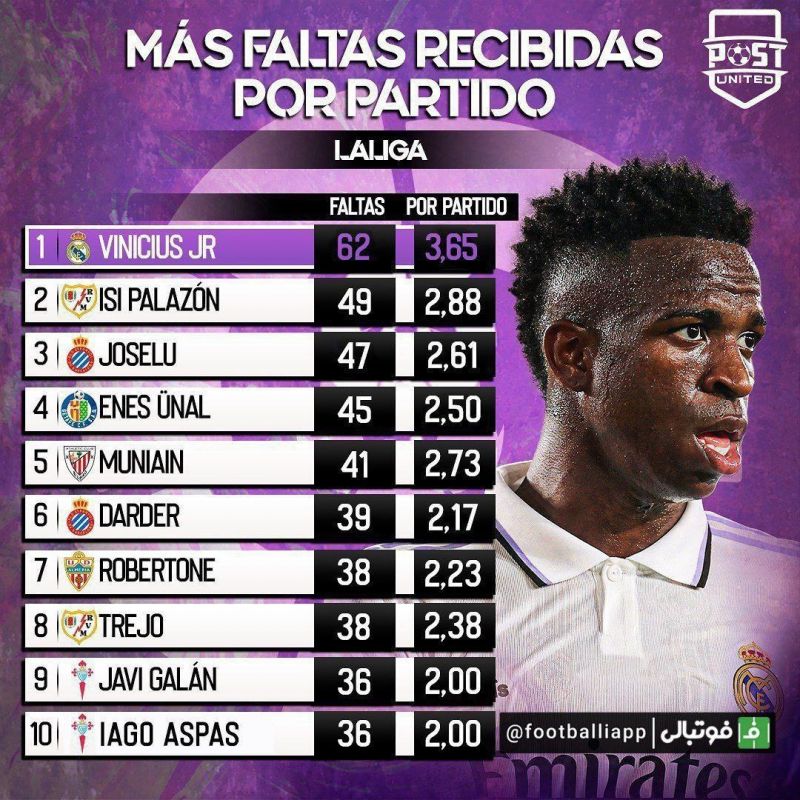 اینفوگرافی / بازیکنانی که در این فصل لالیگا بیشترین خطا بر روی آنها صورت گرفته است