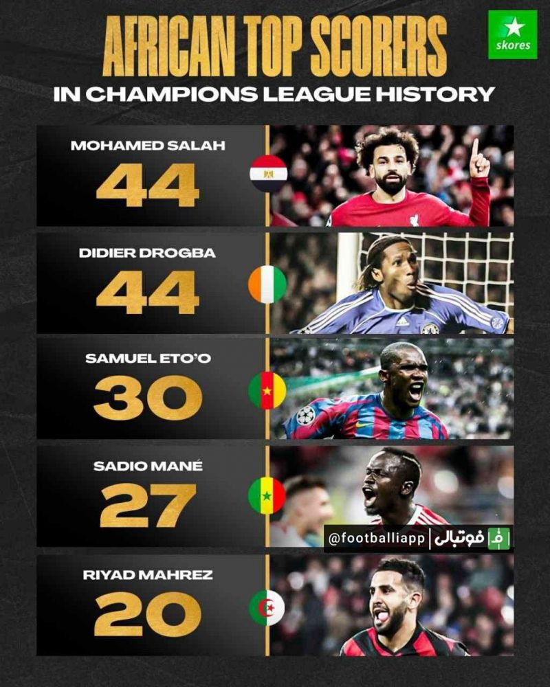 - اینفوگرافی برترین گلزنان آفریقایی لیگ قهرمانان اروپا