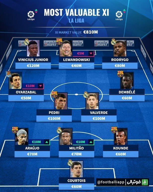 اینفوگرافی/ تیم منتخب ارزشمندترین بازیکنان لالیگا