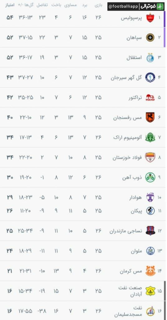 - لیگ برتر جدول لیگ برتر پرسپولیس مس کرمان آلومینیوم اراک نساجی