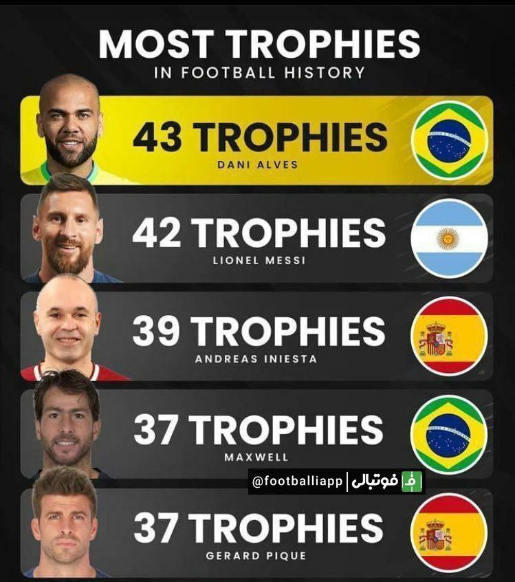 - اینفوگرافی تاریخ فوتبال پرافتخارترین بازیکنان