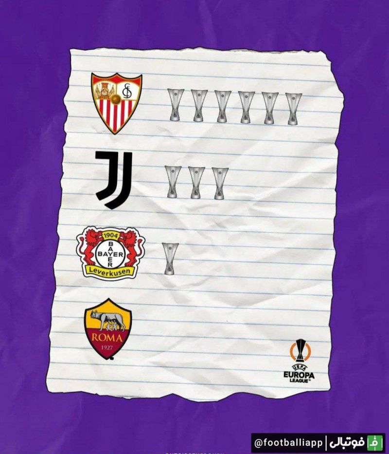 طرح/ تعداد قهرمانی لیگ اروپا تیمهای حاضر در مرحله نیمه نهایی این رقابتها