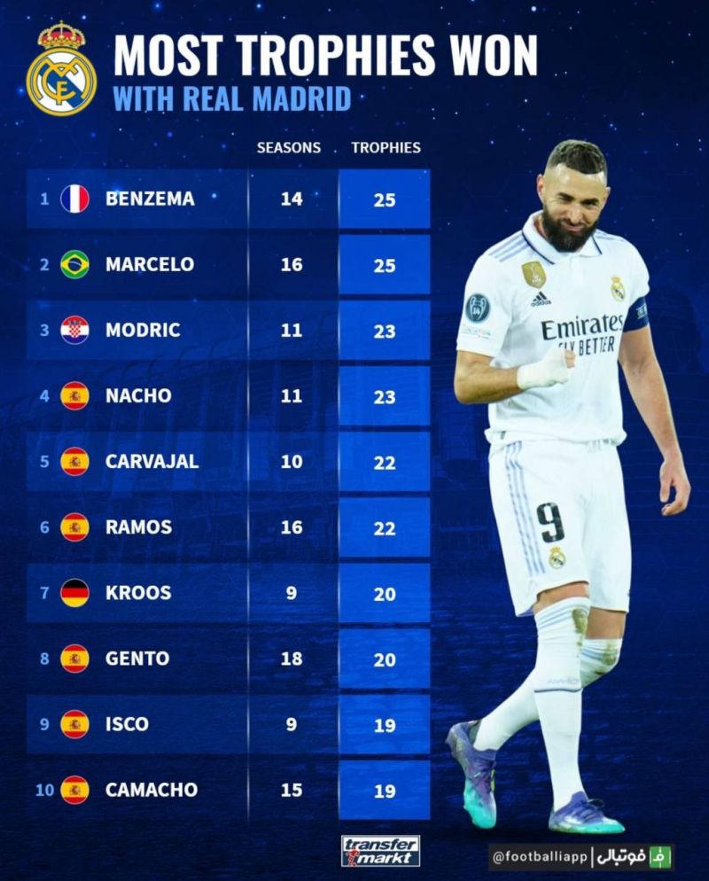 پرافتخارترین بازیکنان تاریخ باشگاه رئال مادرید