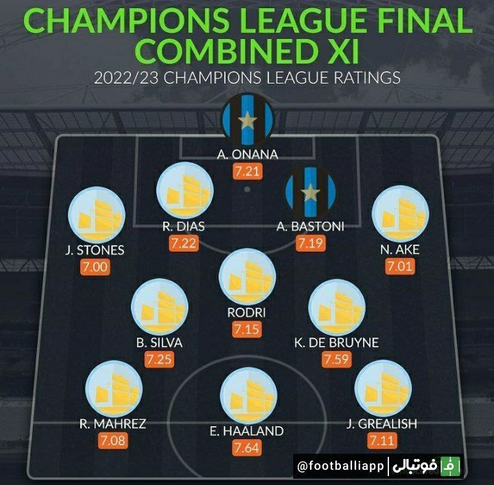 اینفوگرافی/ تیم منتخب هو اسکورد از بین دو تیم منچسترسیتی و اینتر در آستانه فینال لیگ قهرمانان در استانبول