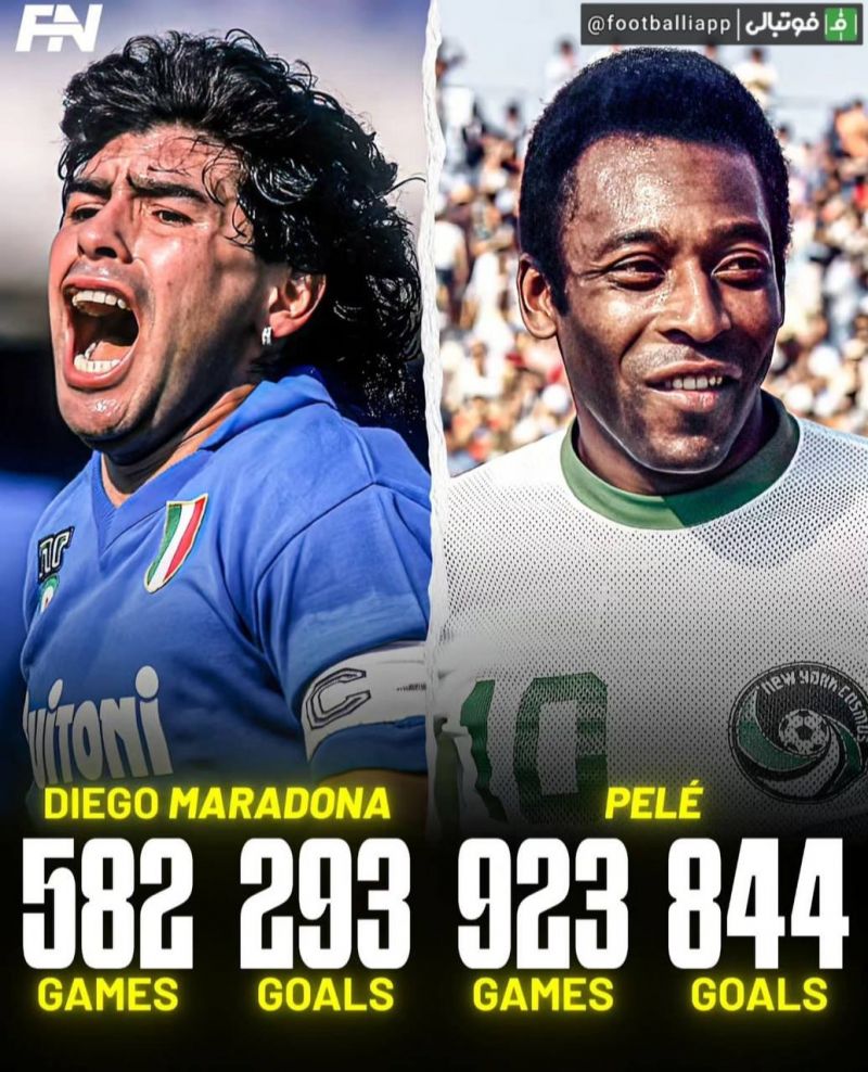 مقایسه آمار و ارقام پله و مارادونای فقید در دوران بازیگری