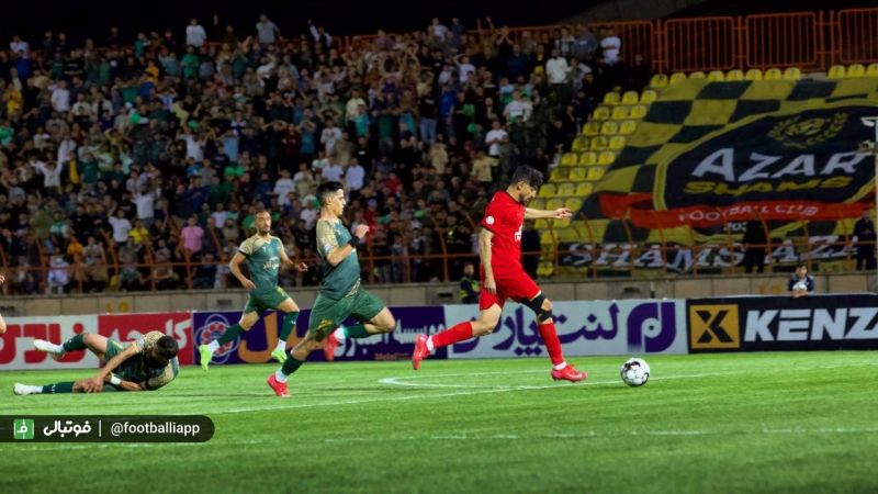 دقیقه۸: پاس خطرناک هاشم نژاد به دهانه دروازه با تکل مدافعان شمس آذر دور شد.