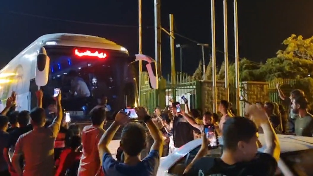 چند نفر از طرفداران تیم ملی جلوی اتوبوس تیم ملی را گرفتند و به اتوبوس تیم اجازه حرکت نمیدهند