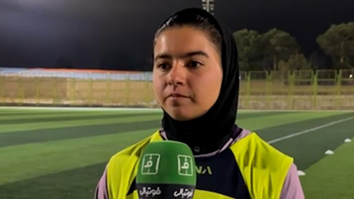 تینا جهانشاهی مهاجم تیم فوتبال زنان استقلال بعد از گلزنی در دیدار مقابل حسن زاده ارومیه