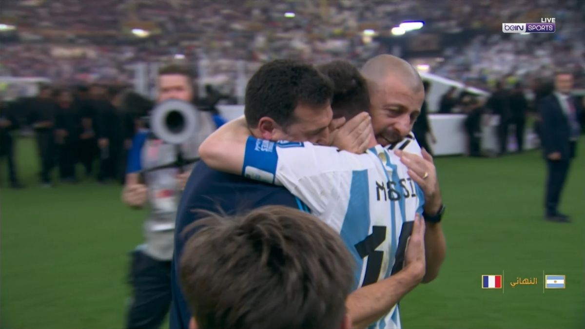 شادی مسی و اسکالونی سرمربی آرژانتین پس از قهرمانی ...